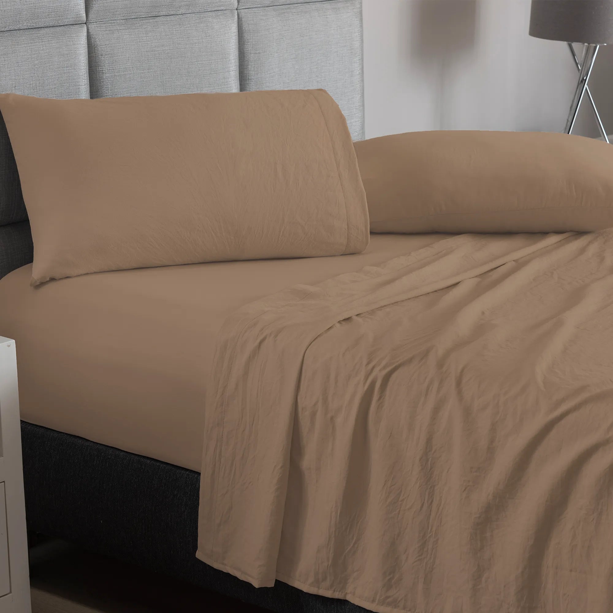 1 Sabana Plana 2,15 m x 2,35m, 1 Sabana Cajón Ajustable 1,80 m x 2,20 m x 36 cm, 2 Fundas de almohada 48x75cm